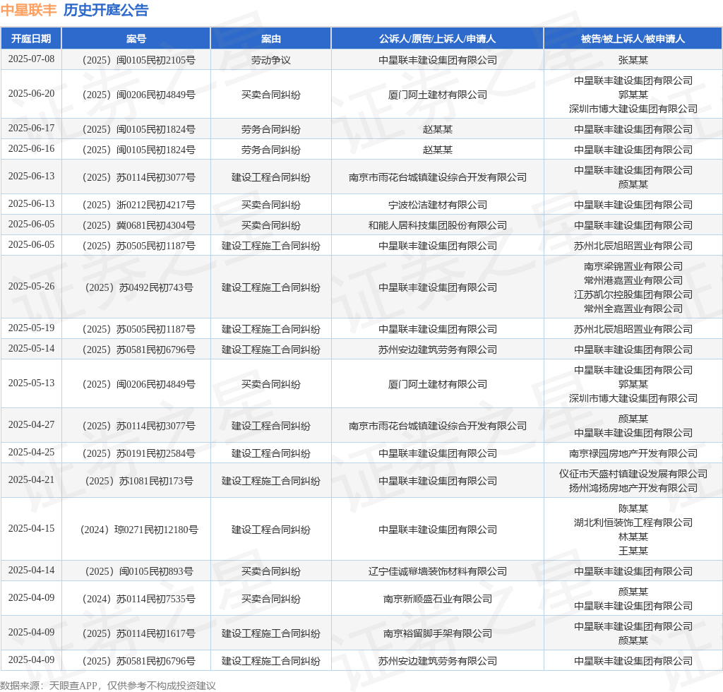 本站消息股融贷股融贷,根据天眼查APP显示,近日公布了一则中星联丰建设集团有限公司作为被告/被上诉人的开庭公告,详细内容如下: