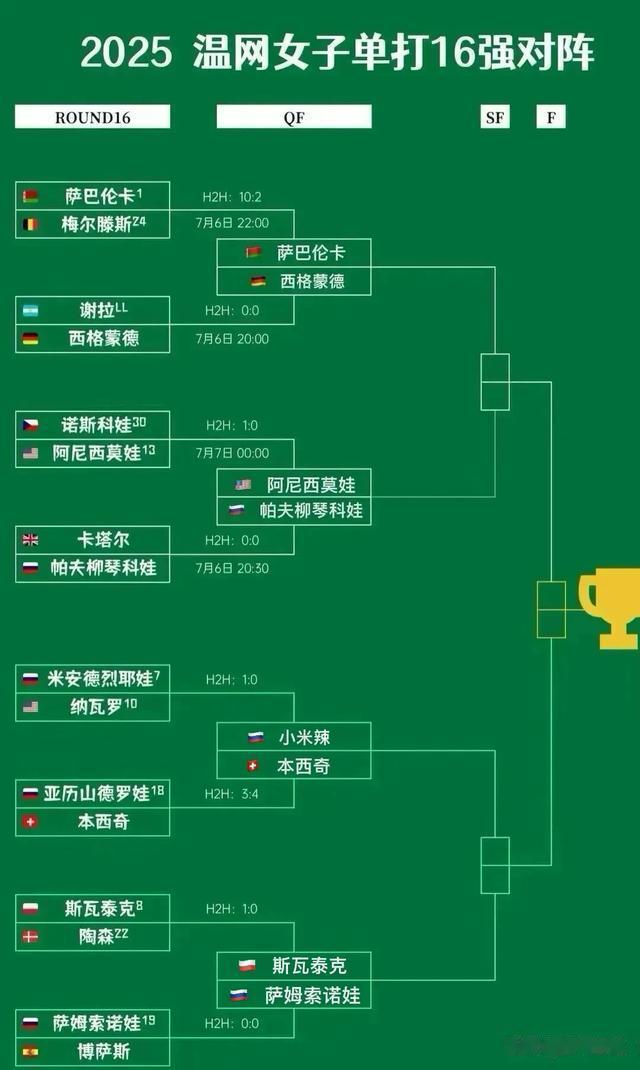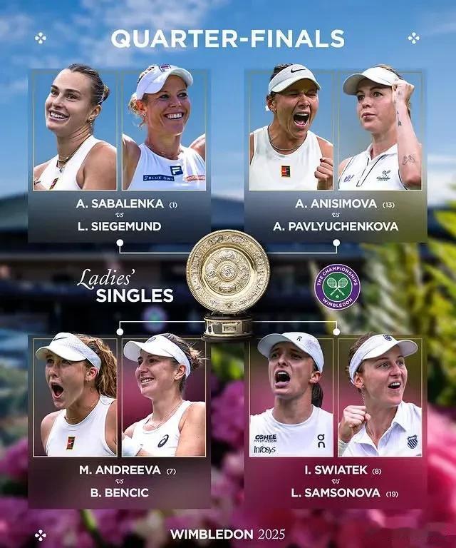 4、8号种子、波兰斯瓦泰克vs19号种子、俄罗斯萨姆索诺娃!