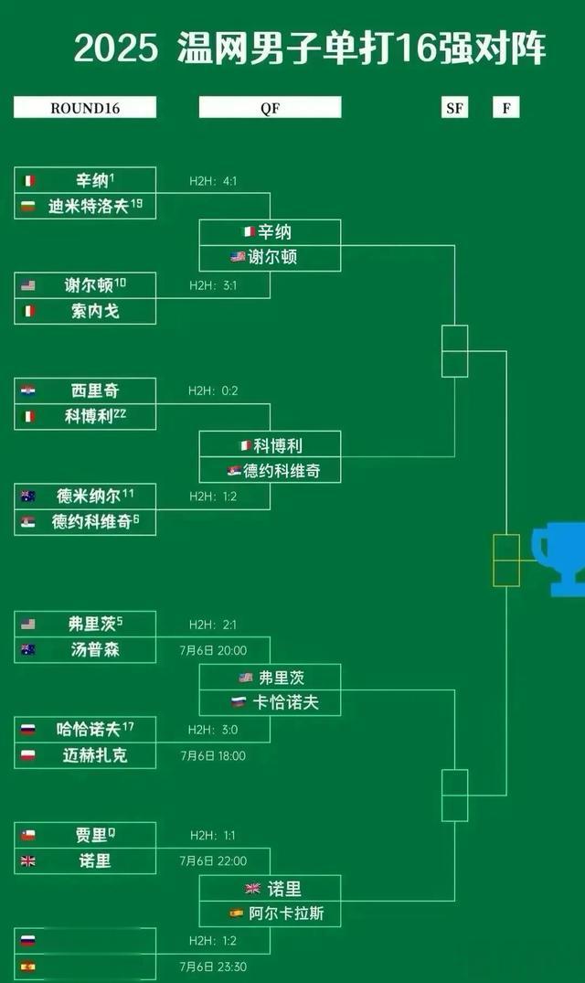 温网第四轮男女单打1/8决赛结束云天华成,八位种子出局:迪米特洛夫大比分领先伤退!