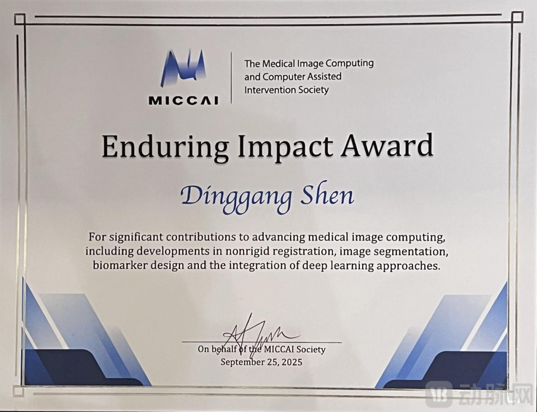 近日东兴证券,上海科技大学生物医学工程学院创始院长、联影智能联席 CEO 沈定刚被全球顶级综合性学术协会 MICCAI 授予Enduring Impact Award (EIA) 持久影响力奖 ,成为该奖项设立 17 年来首位华人获奖者。