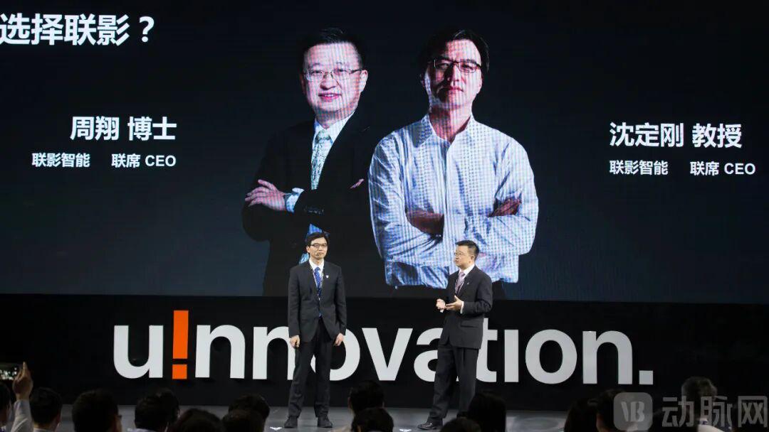 联影智能联席CEO沈定刚(左一)和联影智能联席CEO周翔(右一)在2018年联影创新大会现场