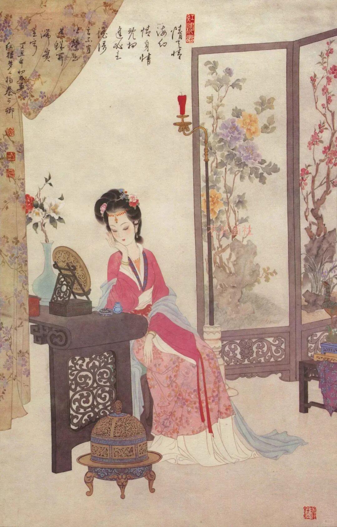 如果说,的“十二钗”色彩华丽,面容艳丽,着重展示这些女子不同凡俗的一面,人人都如同艳压的水墨牡丹;