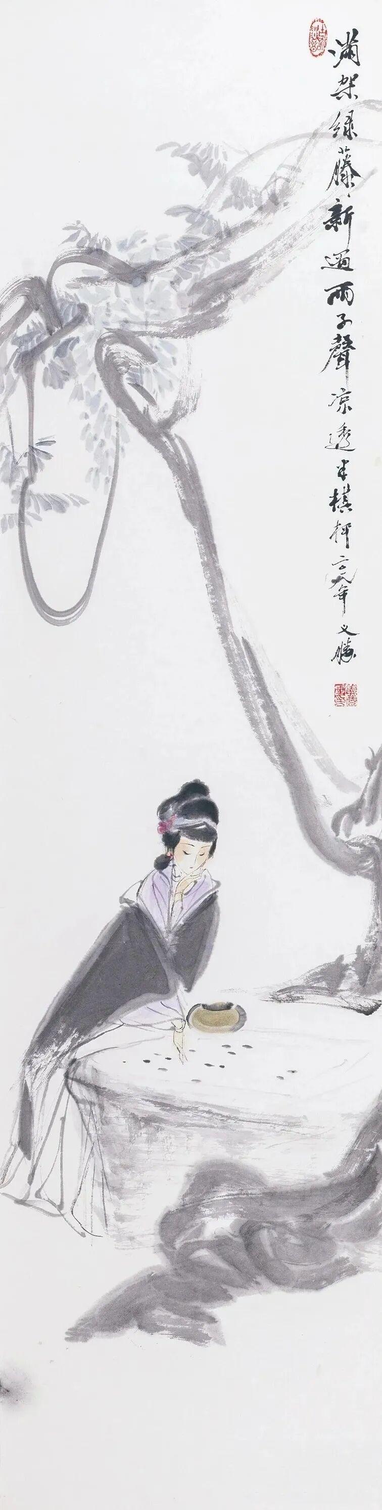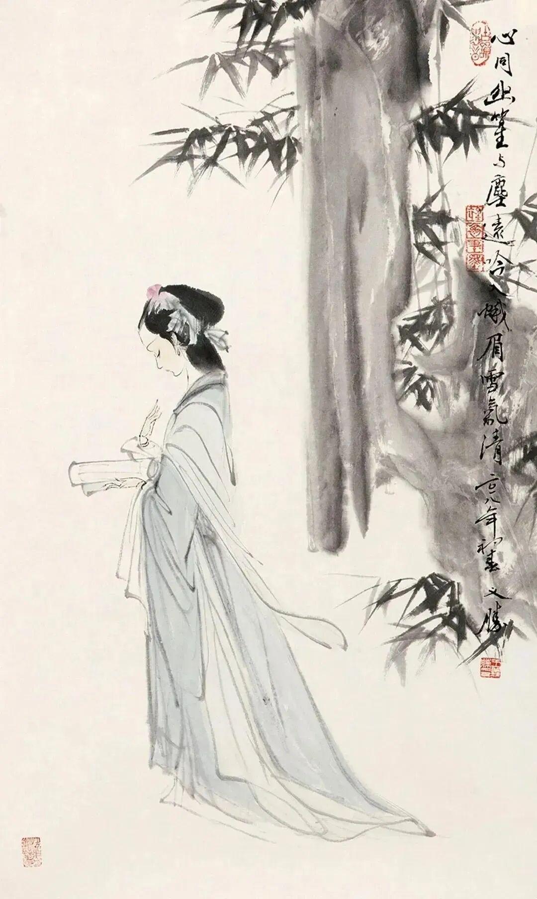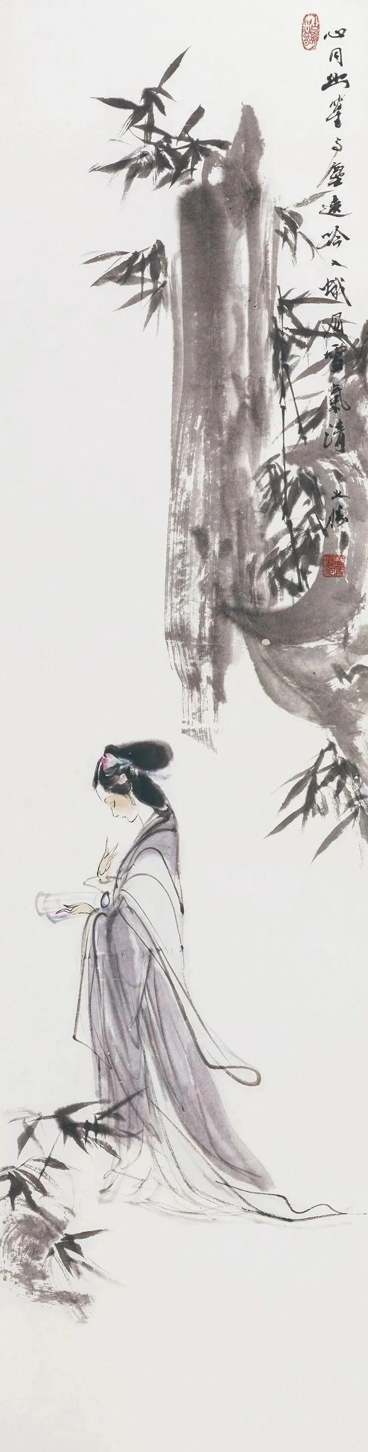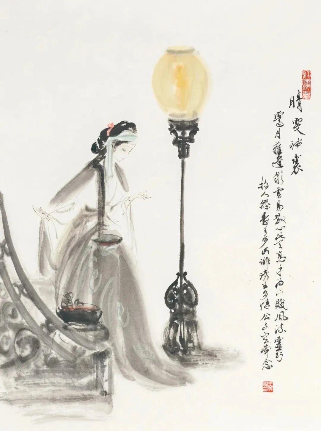 他创作仕女图,追求清新隽永、质朴出尘的美学气韵,要有含蓄的古意又应区别于古人。