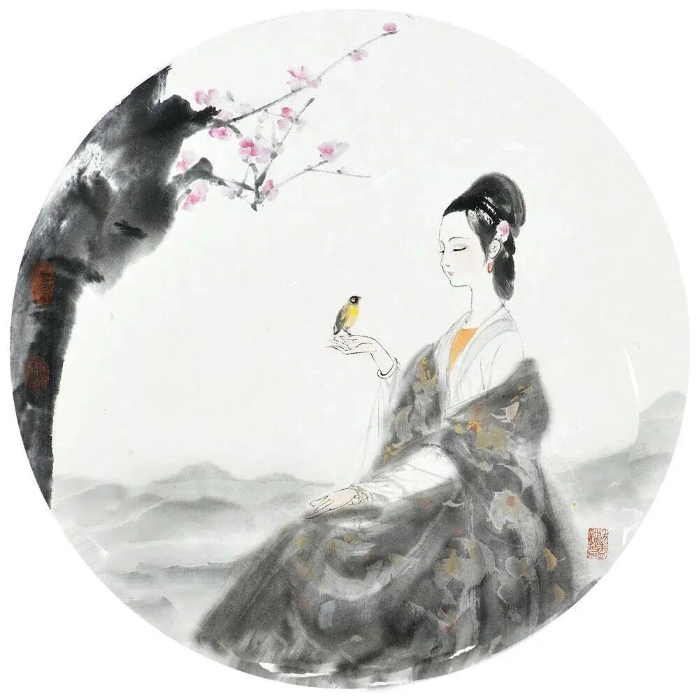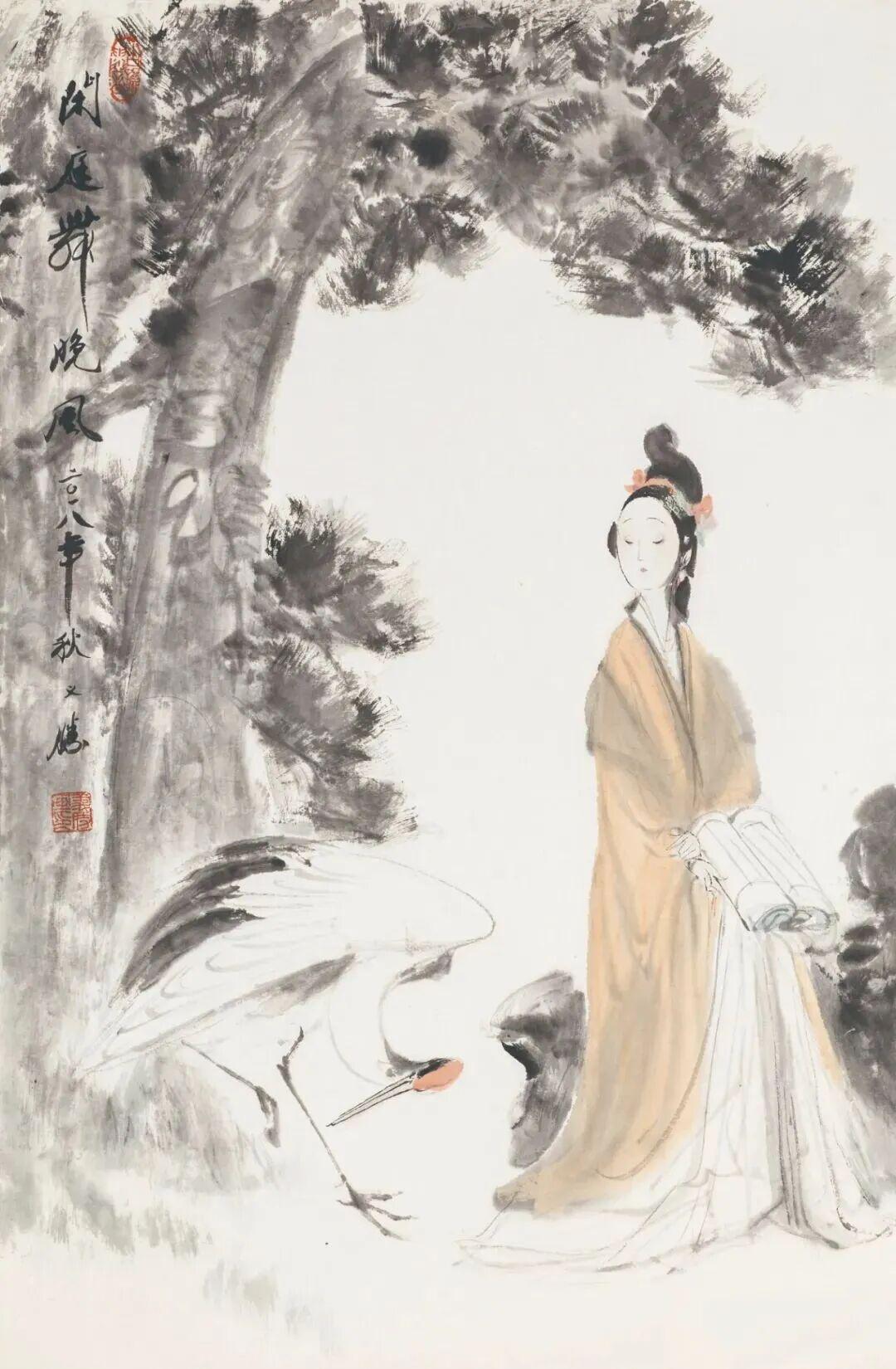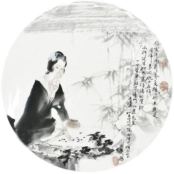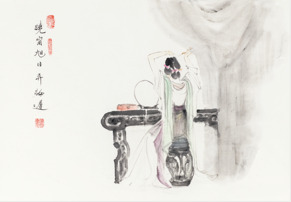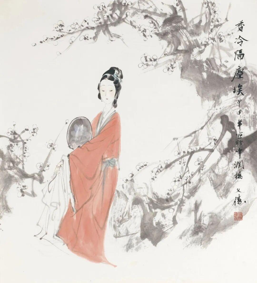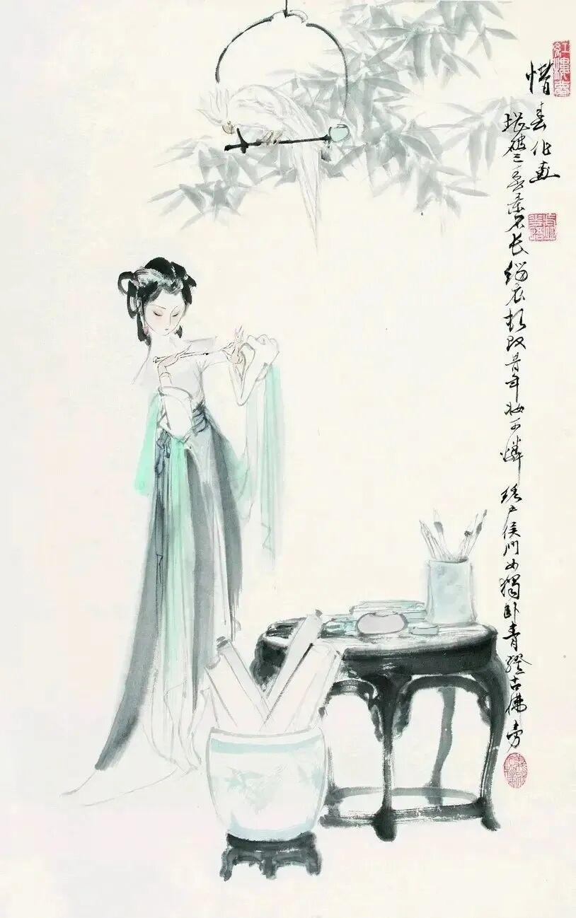 他创作仕女图,追求清新隽永、质朴出尘的美学气韵,要有含蓄的古意又应区别于古人。