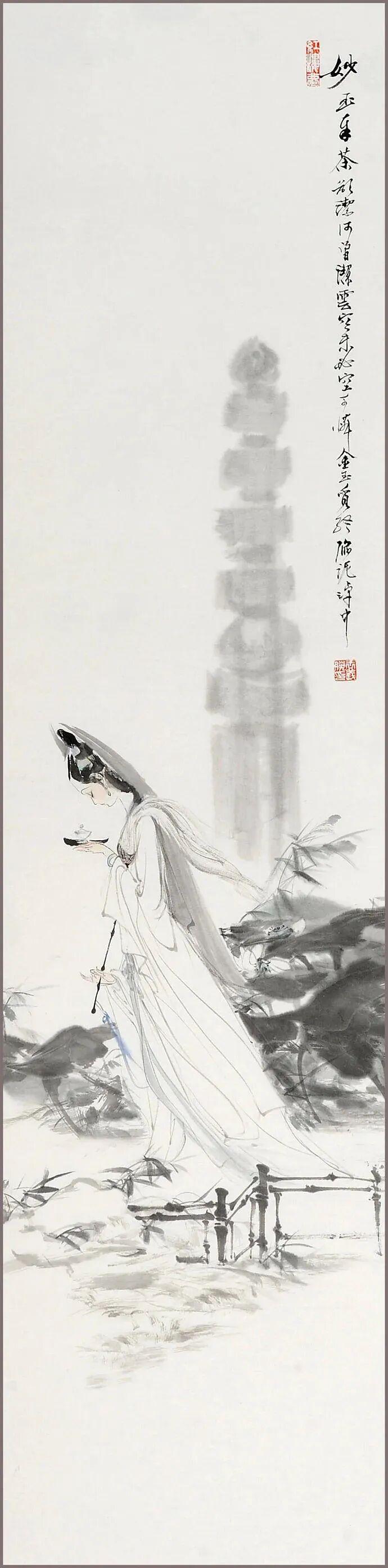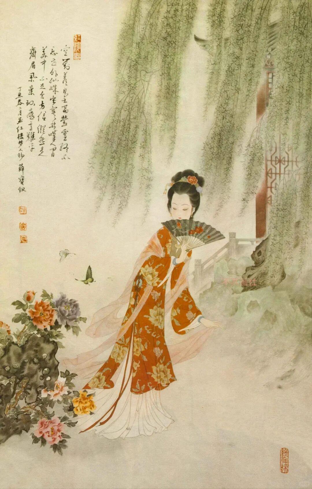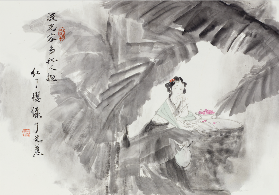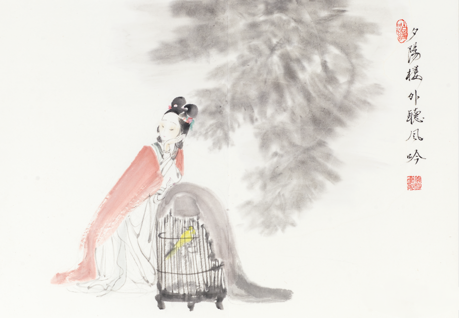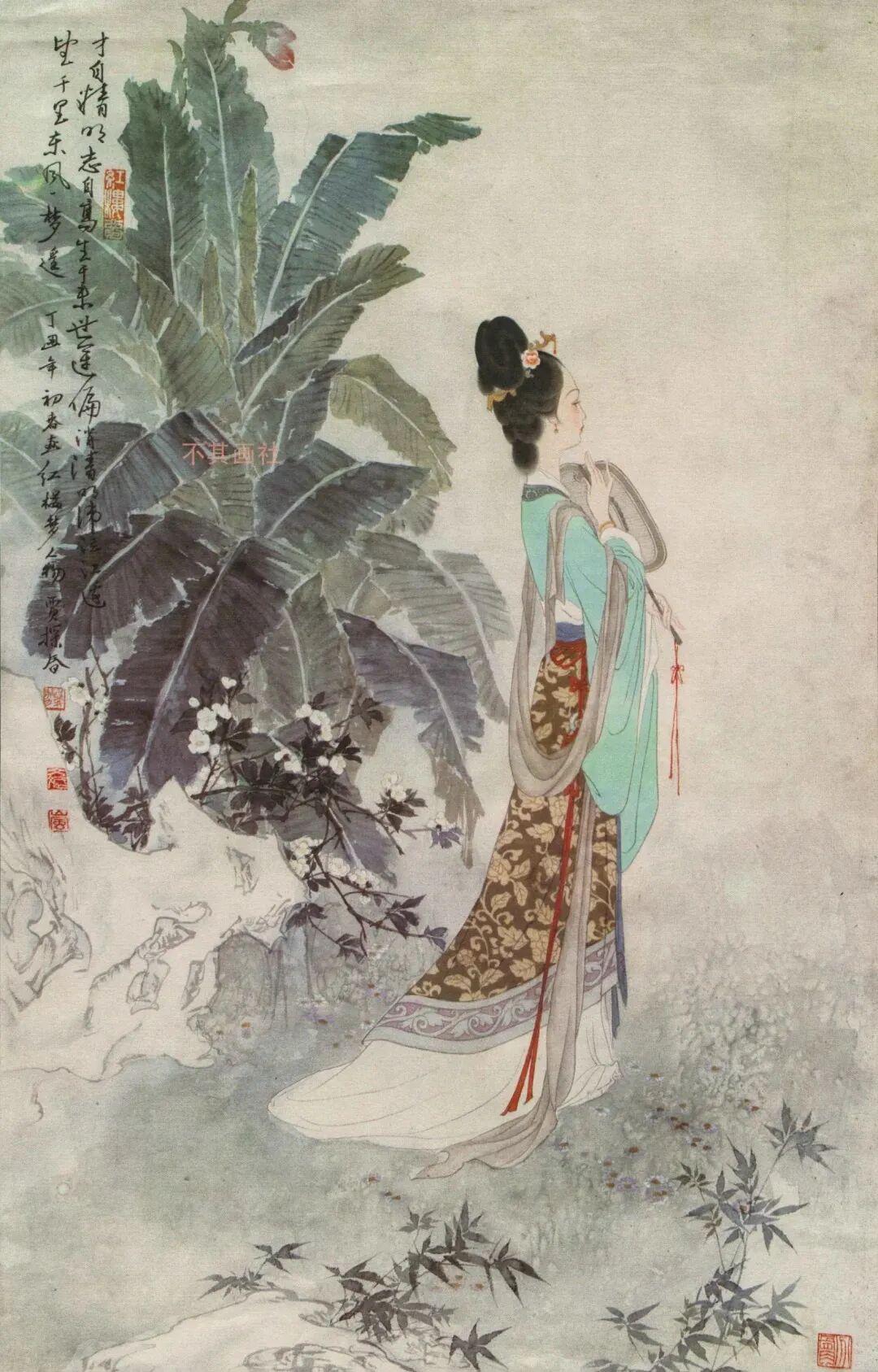 他创作仕女图,追求清新隽永、质朴出尘的美学气韵,要有含蓄的古意又应区别于古人。