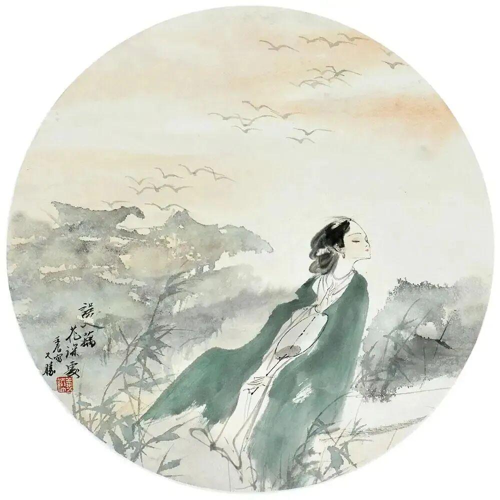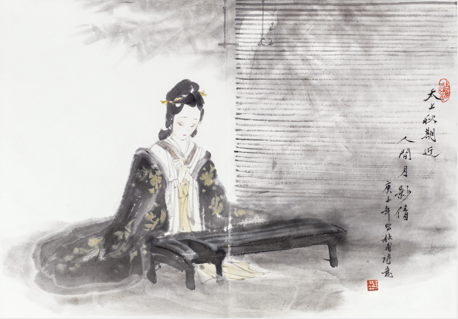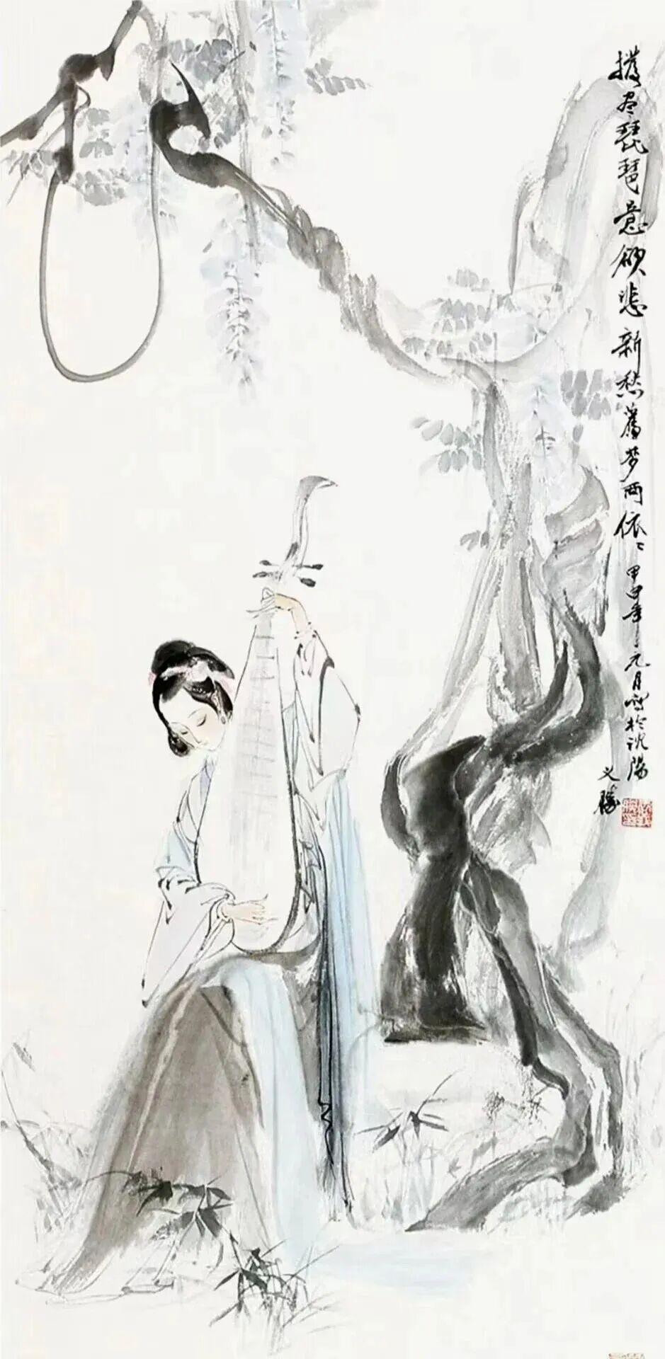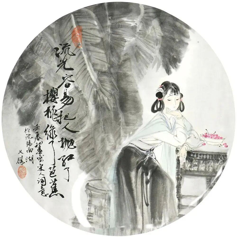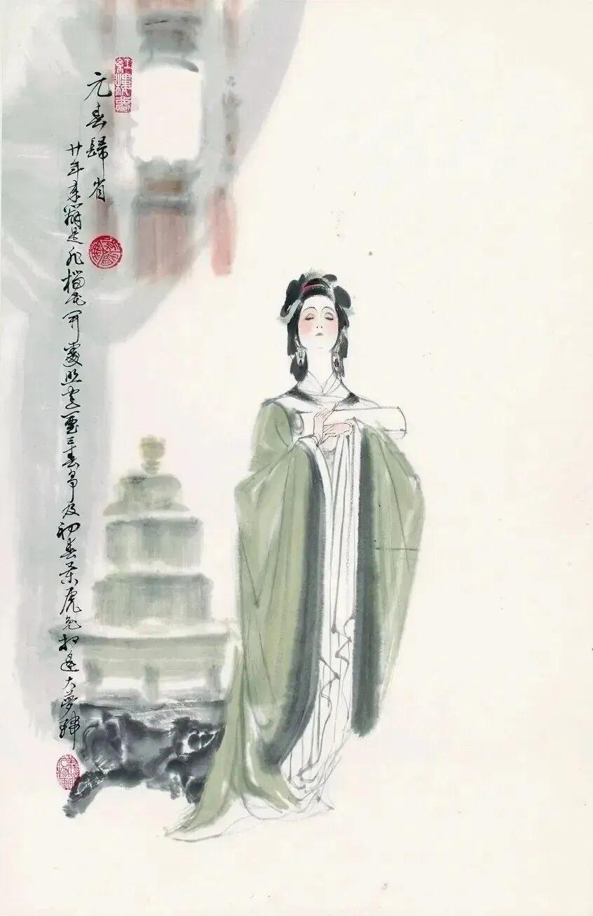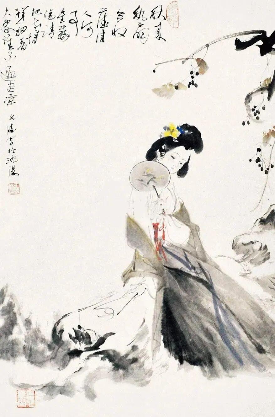 他创作仕女图,追求清新隽永、质朴出尘的美学气韵,要有含蓄的古意又应区别于古人。