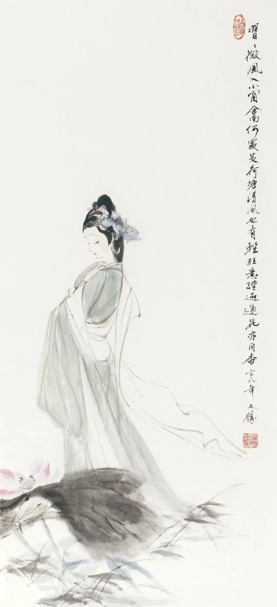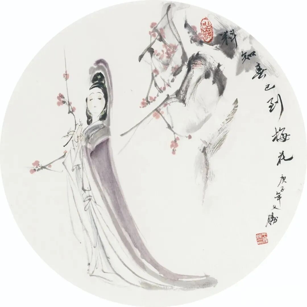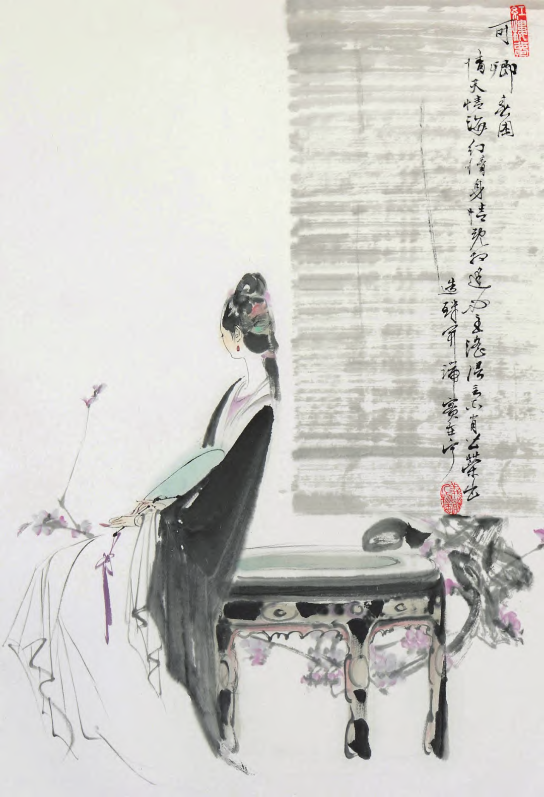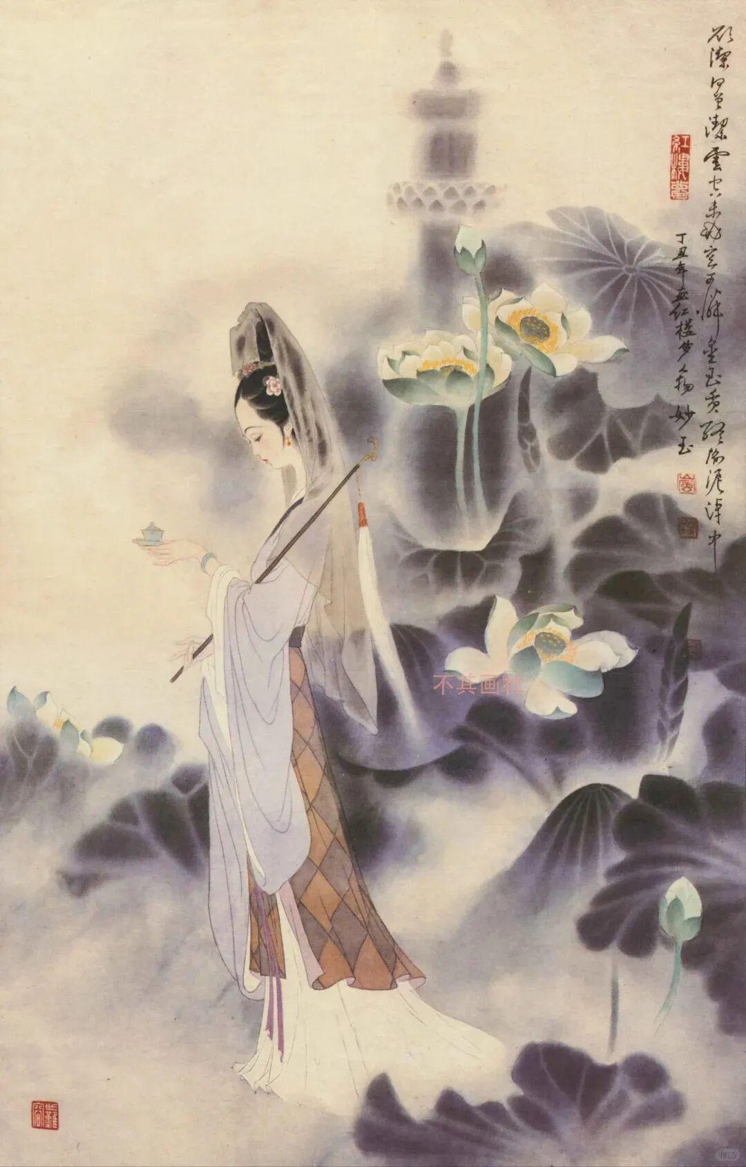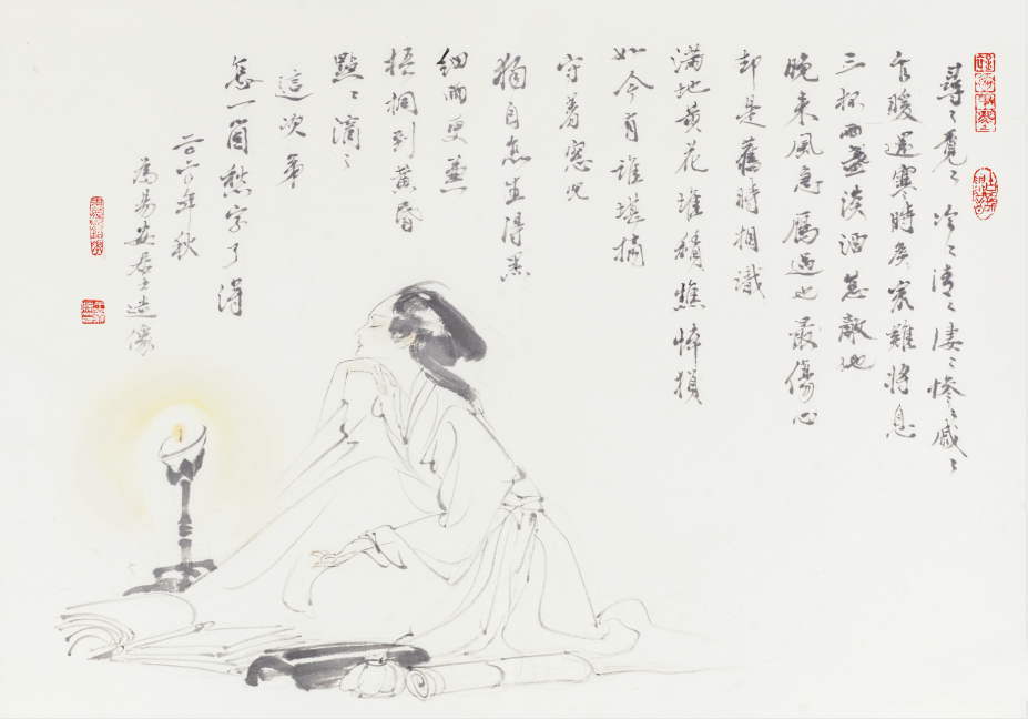 他创作仕女图,追求清新隽永、质朴出尘的美学气韵,要有含蓄的古意又应区别于古人。