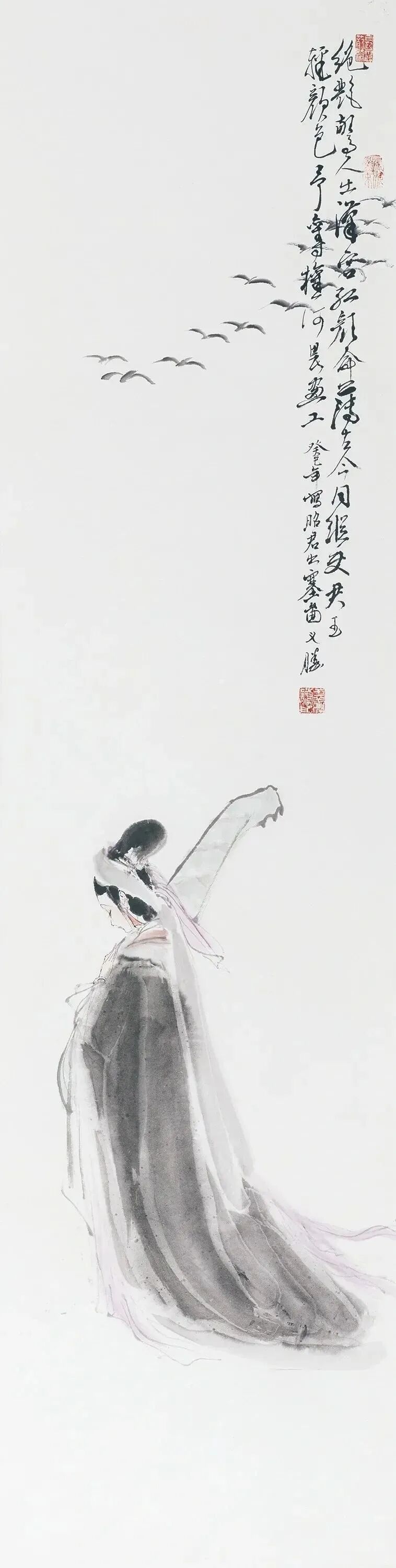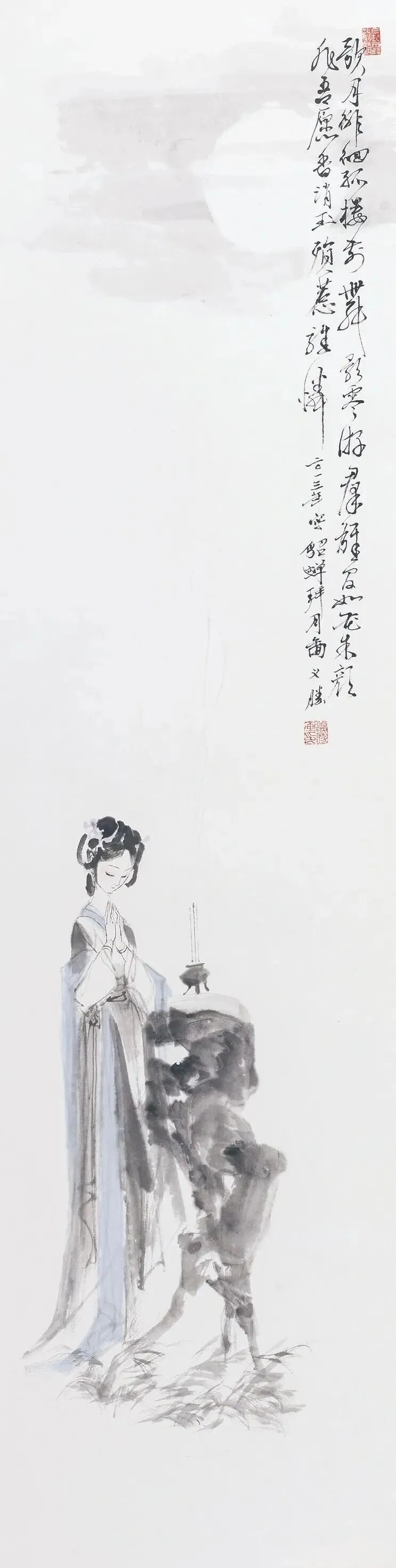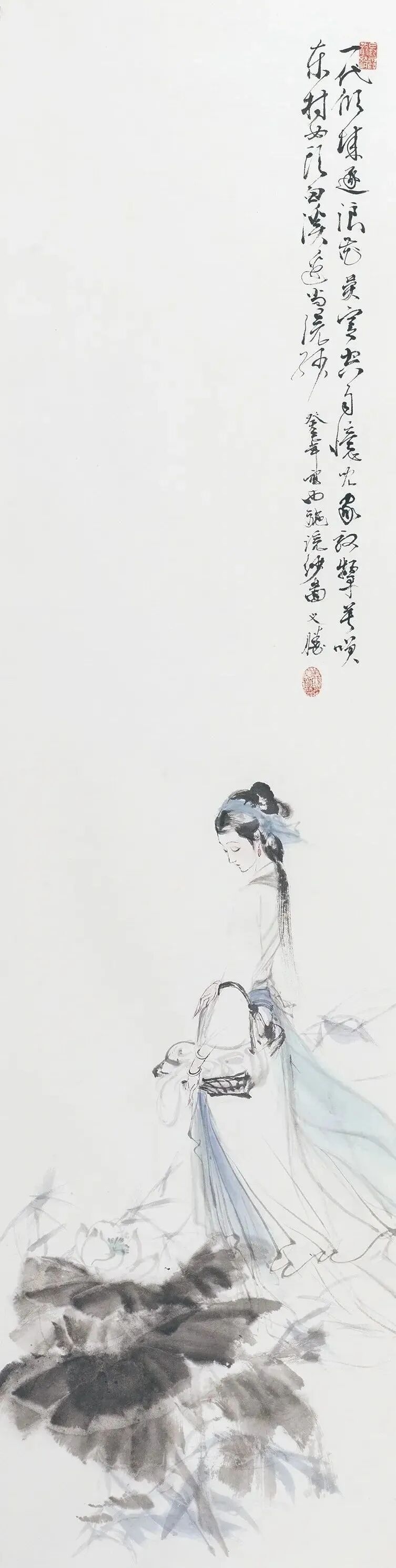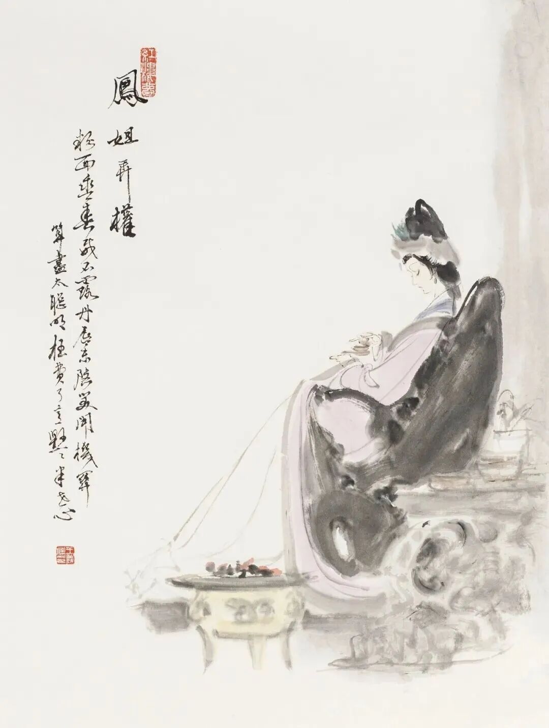 他创作仕女图,追求清新隽永、质朴出尘的美学气韵,要有含蓄的古意又应区别于古人。