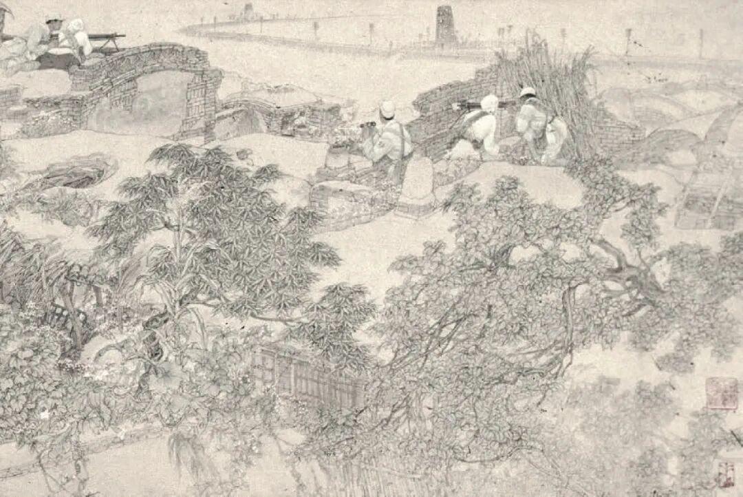 完成这部连环画后,他大概仍觉意犹未尽,没过几年,便又独立创作了绘画风格鲜明、为社会普遍认可的工笔画《白求恩夜过封锁线》。