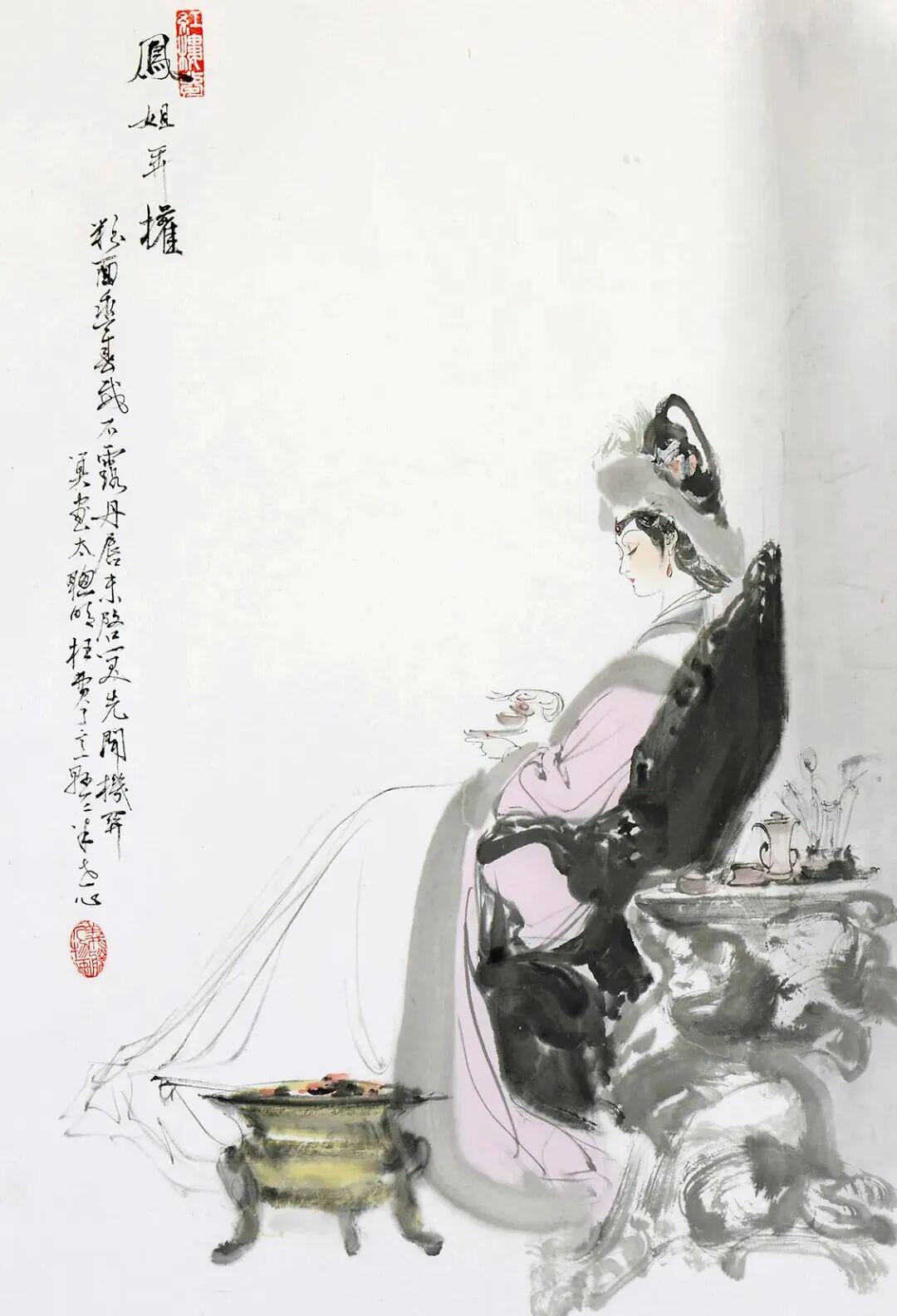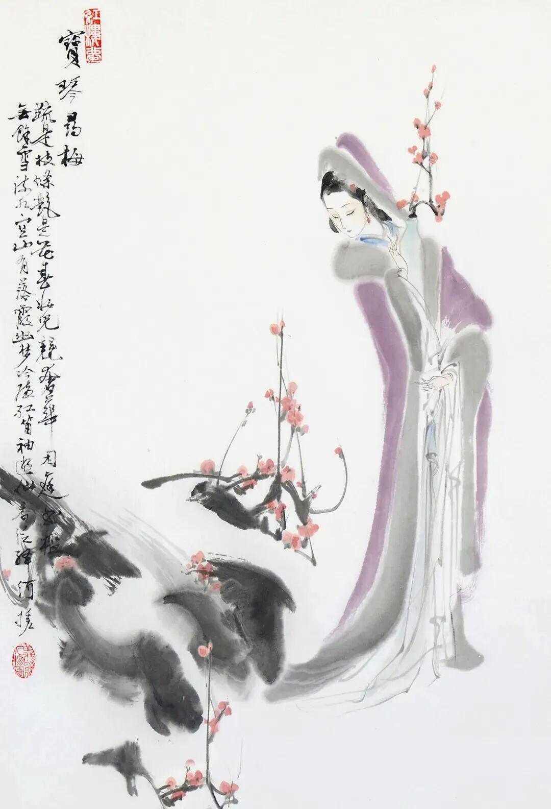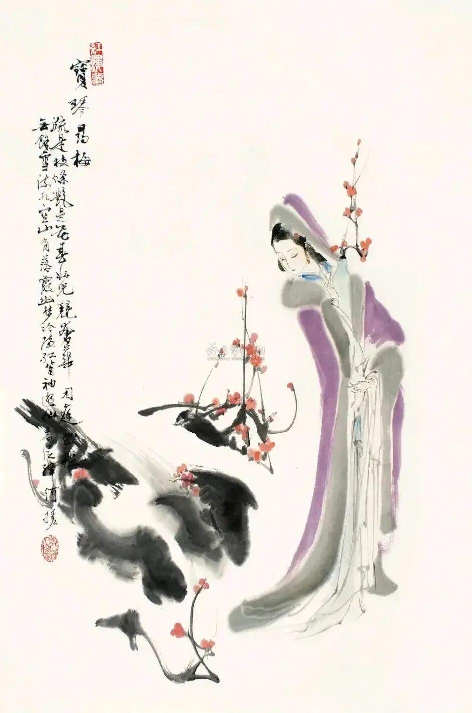 “以写意仕女人物驰名艺坛,其所做红楼十二钗,尤能得其神韵。素为艺林宝重,倾以其妙绘。”
