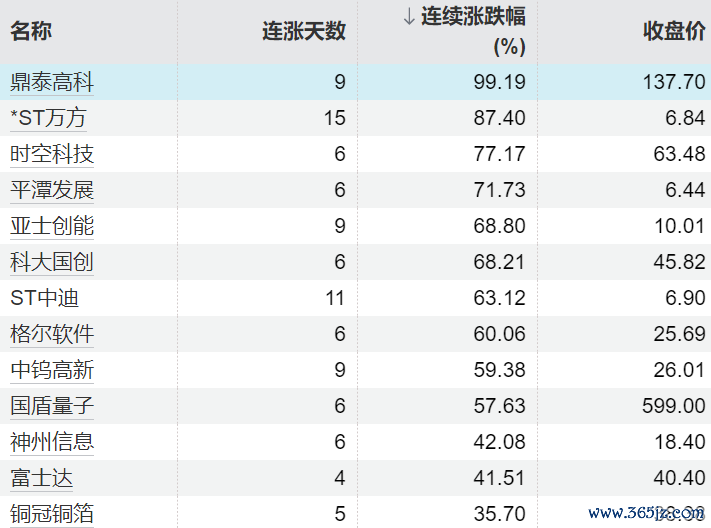111只个股连续上涨5个交易日及以上111只个股连续上涨5个交易日及以上