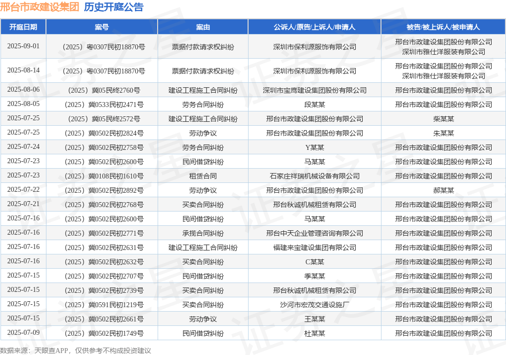 本站消息,根据天眼查APP显示,近日公布了一则邢台市政建设集团股份有限公司作为原告/上诉人的开庭公告大资本优配,详细内容如下: