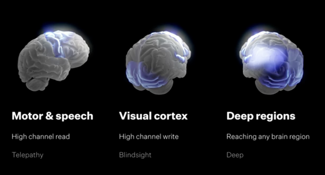 Neuralink希望通过植入拥有数十万乃至数百万通道的设备,解决所有已知的神经系统疾病,甚至是释放人类大脑的全部潜能,开启一个全新的时代。
