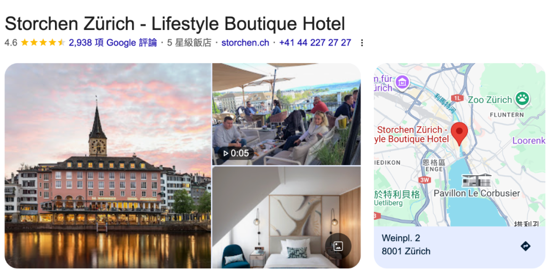 訚重和商燕下榻的酒店,是坐落于利马特河畔边拥有650年历史的Storchen Zürich - Lifestyle Boutique Hotel精品老牌酒店。 ▼