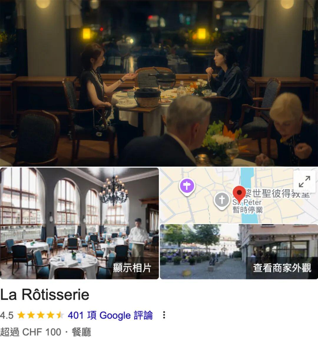 酒店二楼还有米其林一星的法餐馆La Rôtisserie,两人的晚餐画面也是在这里拍摄的。▼