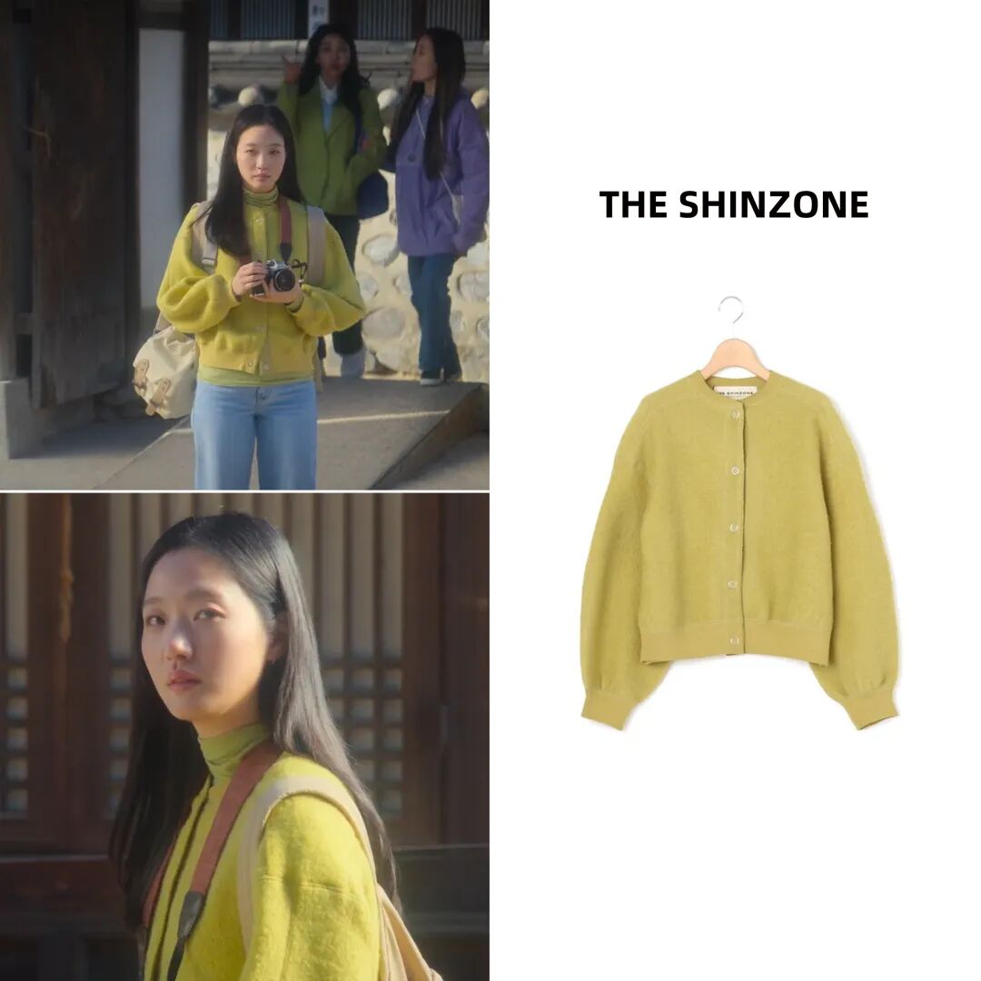 黄色、绿色色系她穿的尤其多,这种顺色穿法也很好学。黄绿色针织外套来自日本品牌The Shinzone,不过是过季款,目前已经买不到了。▼