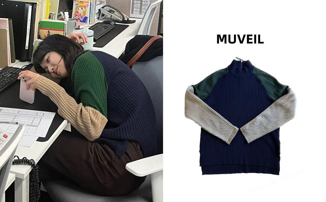 訚重在这个时期,还穿了不少运动休闲风的毛衣,这件拼色毛衣就很让人种草▼