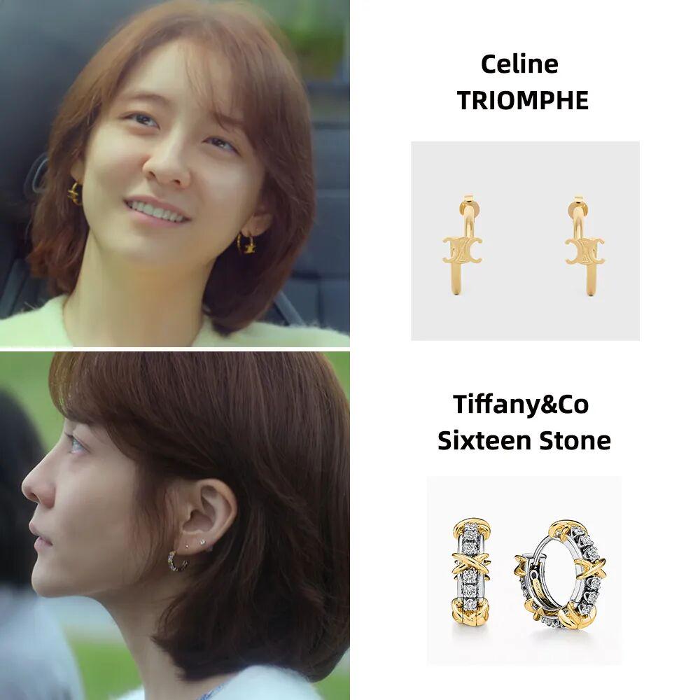 Celine这款黄铜耳环属于朴智贤的私人首饰;下面这款只出现了几秒镜头的耳环,来自Tiffany十六石系列。▼