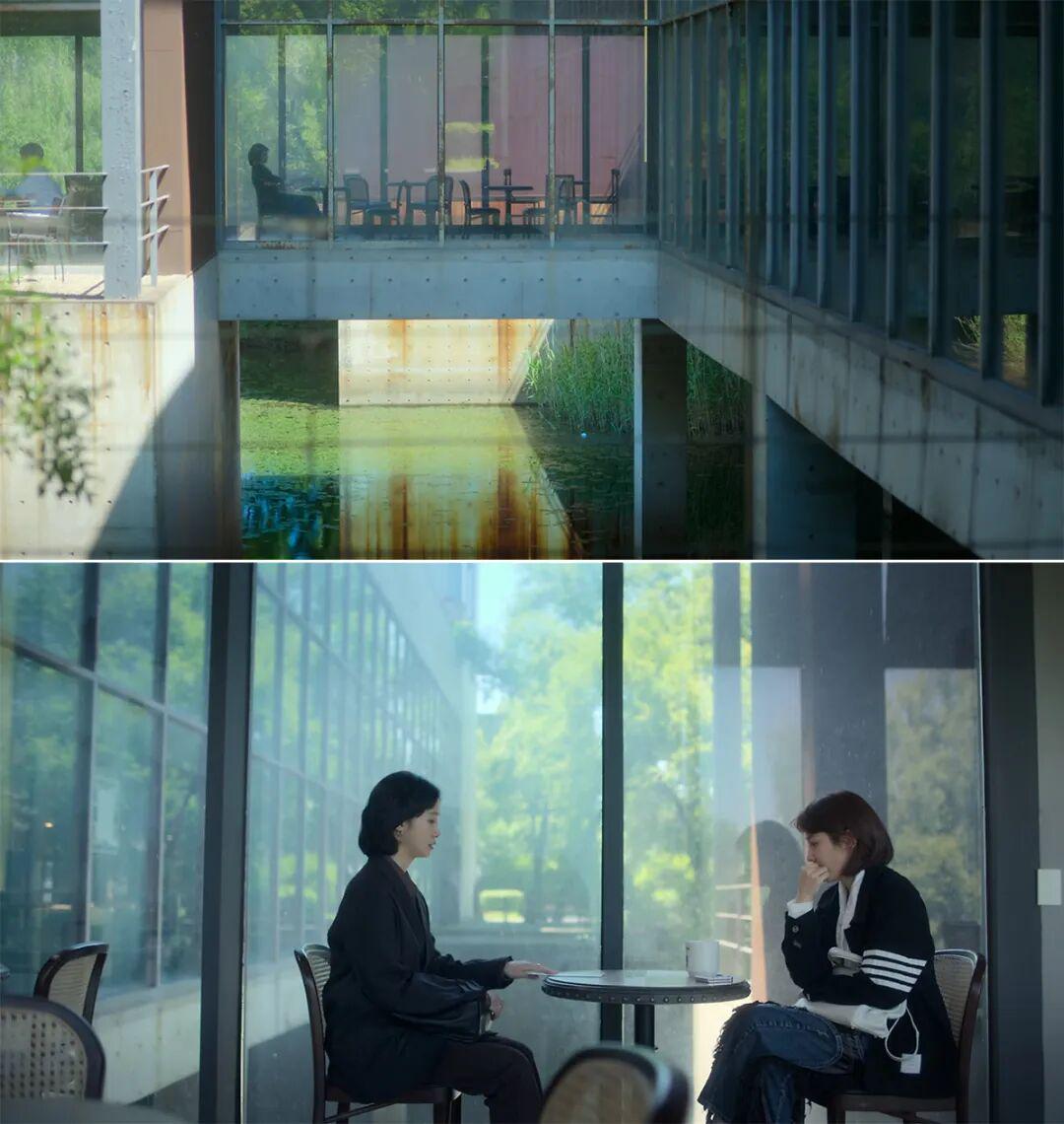 第一集訚重和商燕时隔多年再次见面这场戏,这栋大面积玻璃和钢铁结构的建筑就很吸引人。