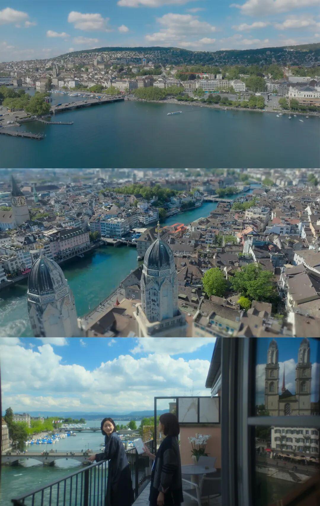 剧中用俯瞰视角,带观众领略不少瑞士苏黎世的著名景点:凯伊桥、苏黎世大教堂、利马特河。▼